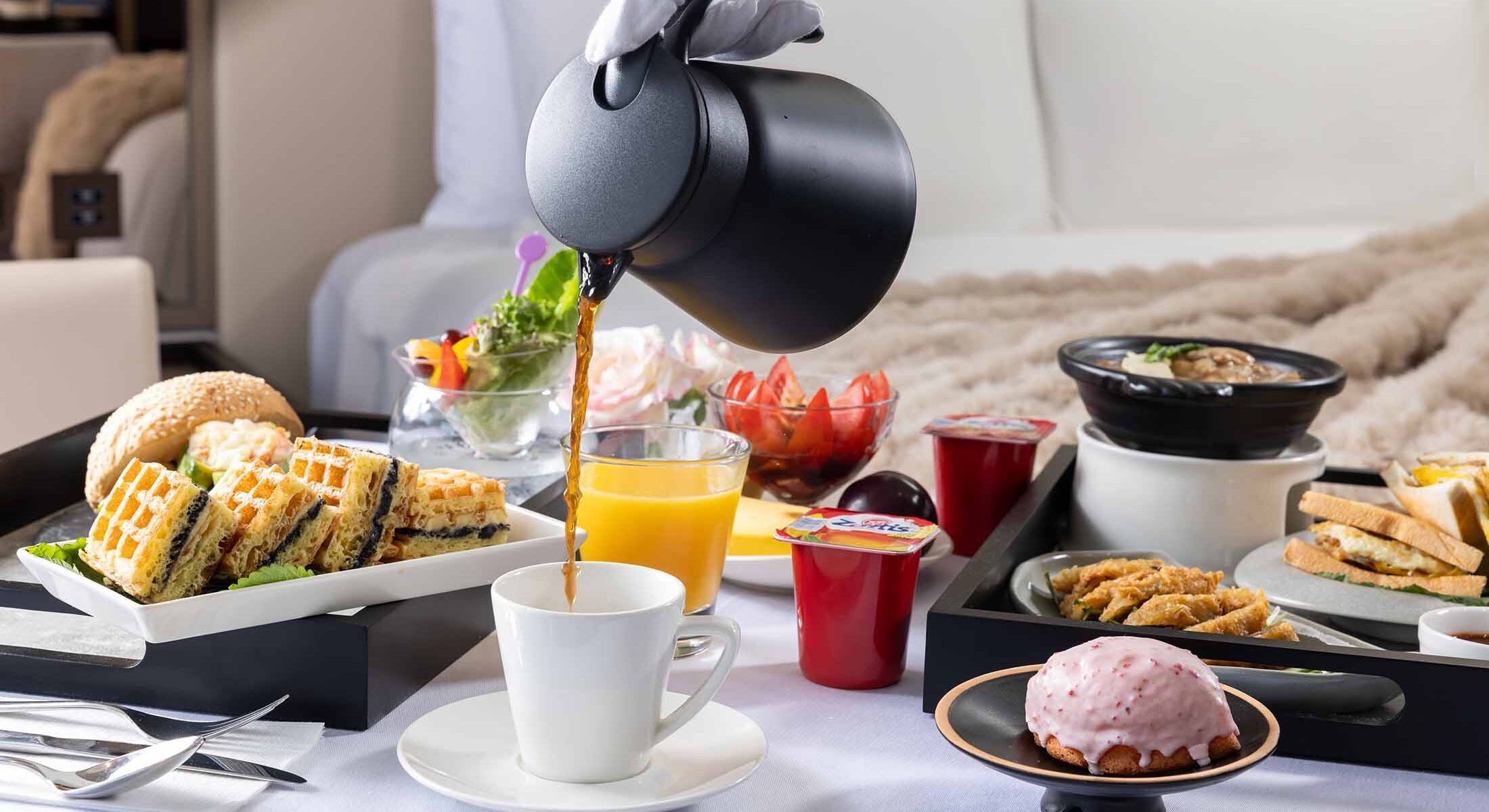 コスモス・オアシス-ボヤージュ高雄の28の客室、そして美しい花の飾られた吹き抜けのスタイリッシュなロビーには自然の光が美しく差し込み、高雄周辺の文化的な観光スポットとともに、港の風景と調和し、心身ともにおくつろぎいただける静かな空間です。