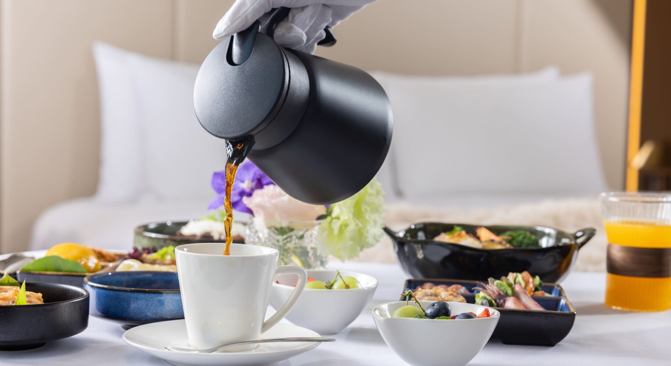 コスモス・オアシス-ボヤージュ高雄の28の客室、そして美しい花の飾られた吹き抜けのスタイリッシュなロビーには自然の光が美しく差し込み、高雄周辺の文化的な観光スポットとともに、港の風景と調和し、心身ともにおくつろぎいただける静かな空間です。